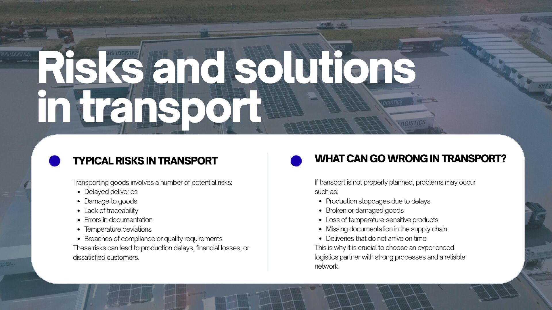 BHS Logistics offers flexible transport solutions, strong networks, and documented quality.